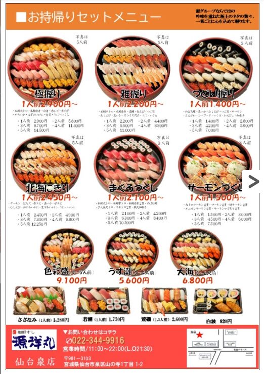 海鮮すし『源洋丸 仙台泉店』のメニュー