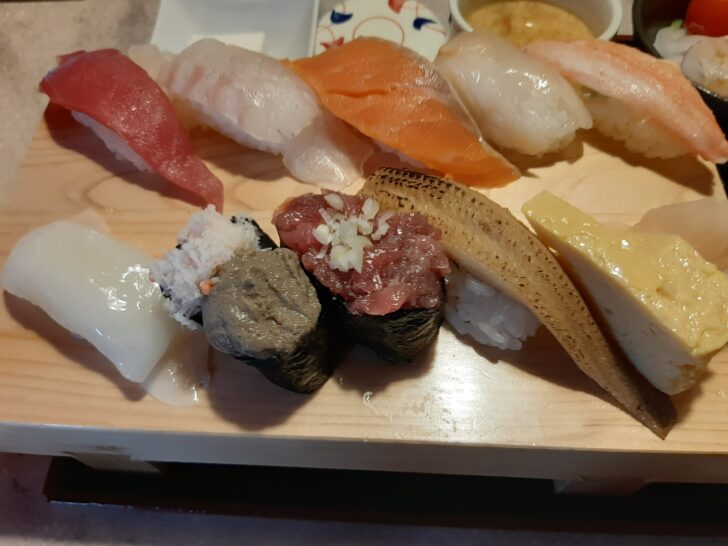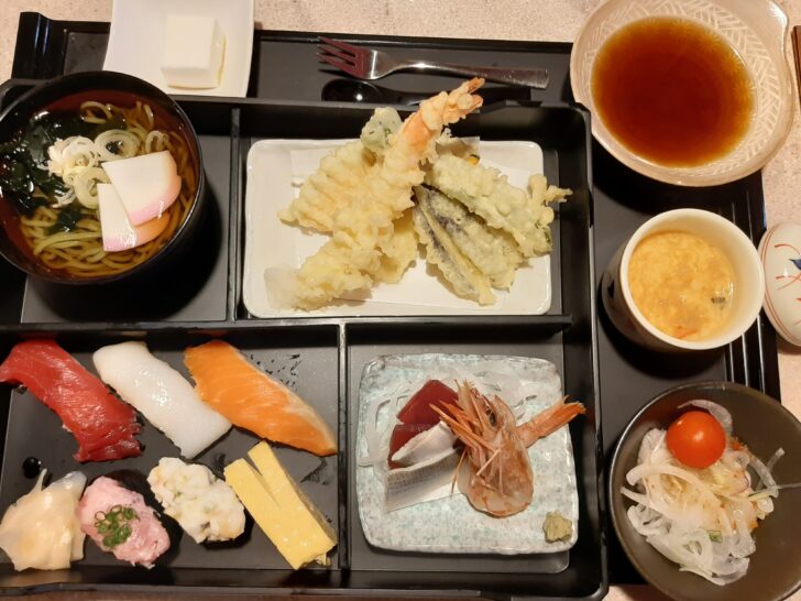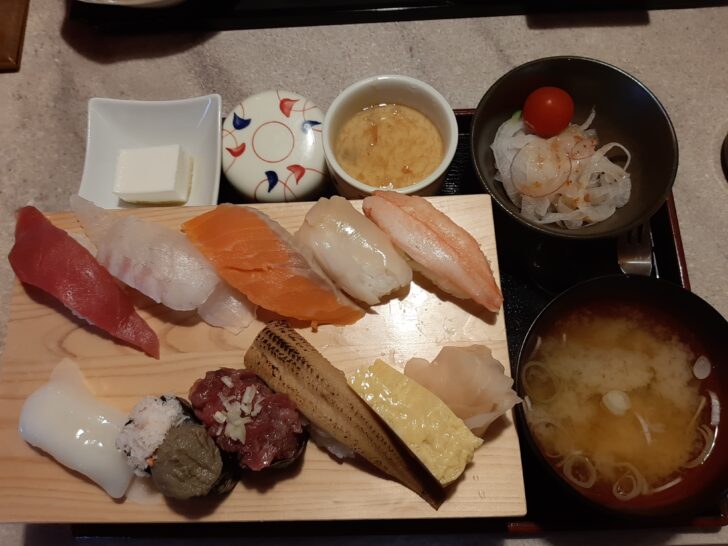 私が注文したさくらセットは、お寿司10貫、茶碗蒸し、サラダ、味噌汁、デザートがついています。お寿司をたくさん食べたい人にはおすすめですね。