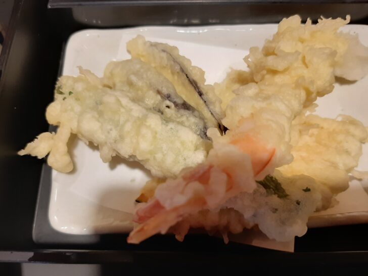 天ぷら盛合わせは、えび、アスパラ、なす、いか、かぼちゃの5点盛と豪華でした。