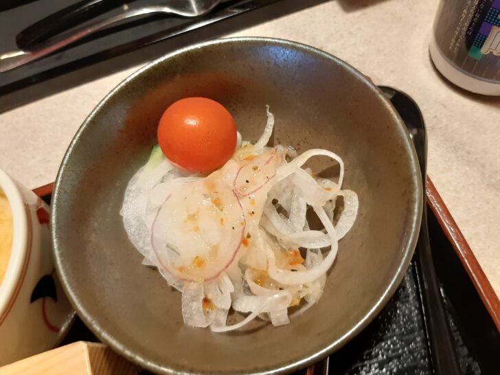 サラダは新玉ねぎとミニトマトで、普通に美味しかったです。