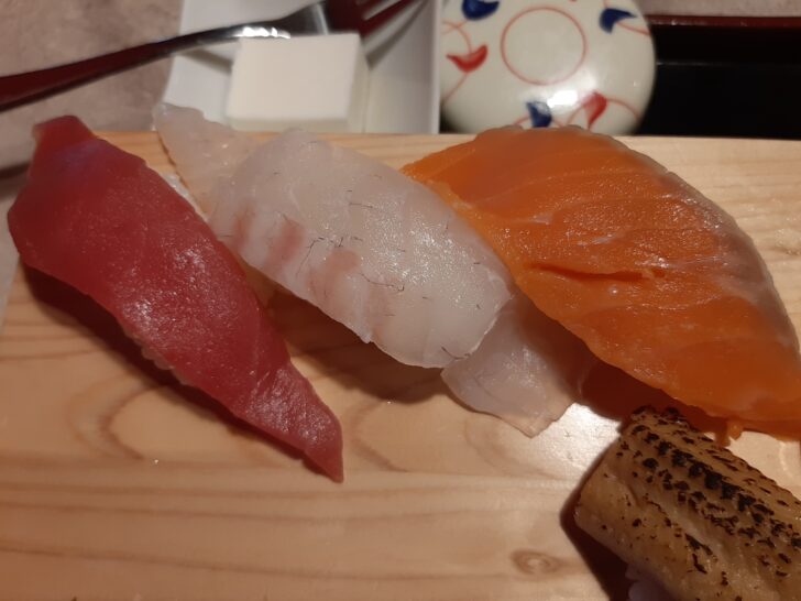 ネタは、本まぐろ赤身、真鯛、サーモン、つぶ貝、茹でズワイガニ、いか、蟹味噌(ほぐし身あり)軍艦、まぐろ中落軍艦、穴子、玉子と大きめでどれも美味しかったです。