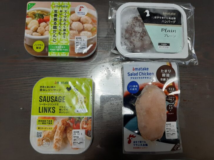 これが、冷凍加工品4点セットです。OPEN記念で1,000円でした。
