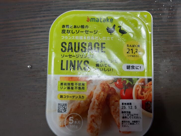 皮なしソーセージはフライパンで焼いて食べましたが、これもヘルシーで美味しかったです。これも写真を撮り忘れました。
