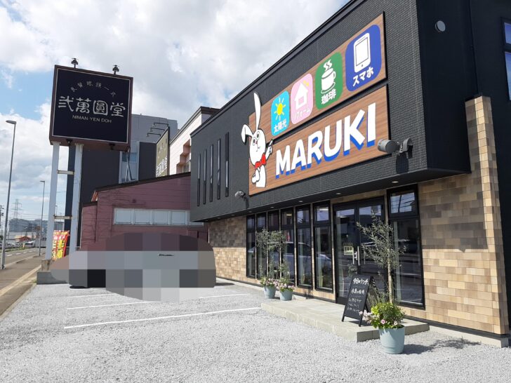 【MARUKI】の場所は『弐萬円堂免許センター前店』の隣にあります。駐車場も10台程度とたっぷりありますね。