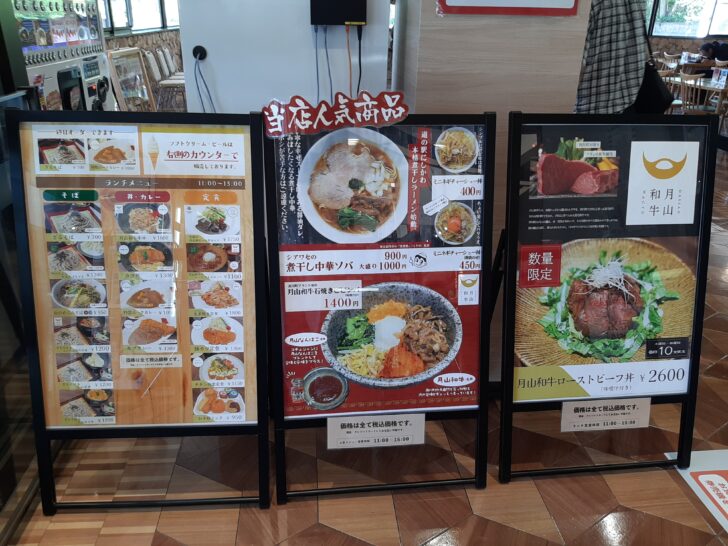 『道の駅にしかわ』レストランは、以前はビールレストランで月山地ビールをメインにして宴会等もできるお店でしたが、地元の人以外は、車で来る方が多いと思うので、アルコールは中々飲めないですね。その後、レストランも変わり、蕎麦や丼物、定食等を提供するお店になりました。その中でも地場産の月山和牛を使用した月山和牛ローストビーフ丼、月山和牛石焼ビビンバは、美味しそうですね。