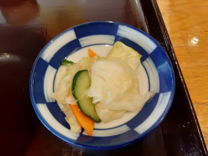 漬物は、キャベツ、きゅうり、人参の浅漬けでした。