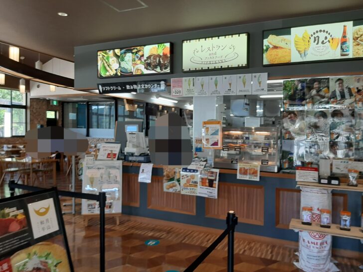 こちらがレストラン&ファストフード店ですが、煮干し中華そばののぼりたくさん立っていました。