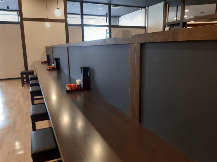 店内は広めでゆったりとしています。おひとり様向けのカウンターは16席もあります。