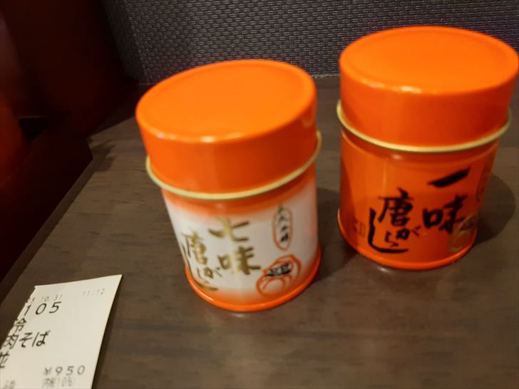 卓上調味料は「一味唐辛子」と「七味唐辛子」のみですね。