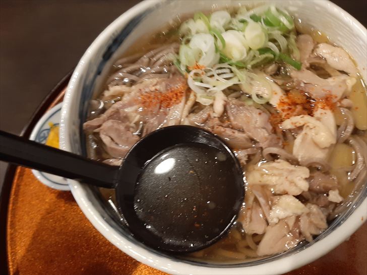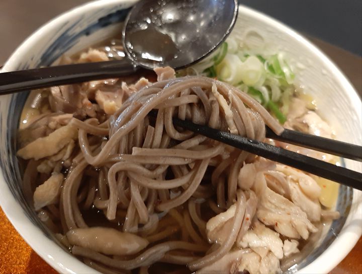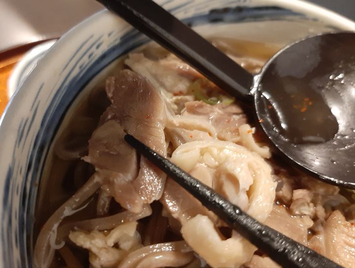 たっぷり載った親鳥肉は、硬すぎず良い塩梅で美味しかったです。