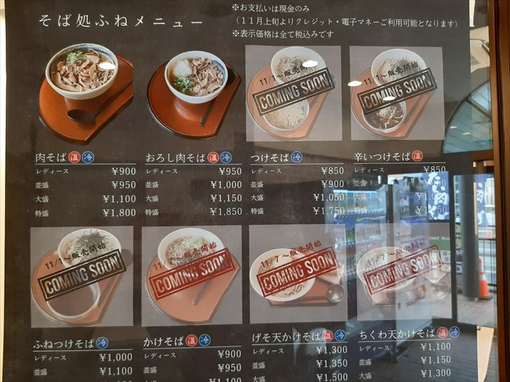 10/31はまだ提供されていませんでしたが、11月よりは、つけそば、かけそば、山菜そば、肉中華等も提供されるようです。