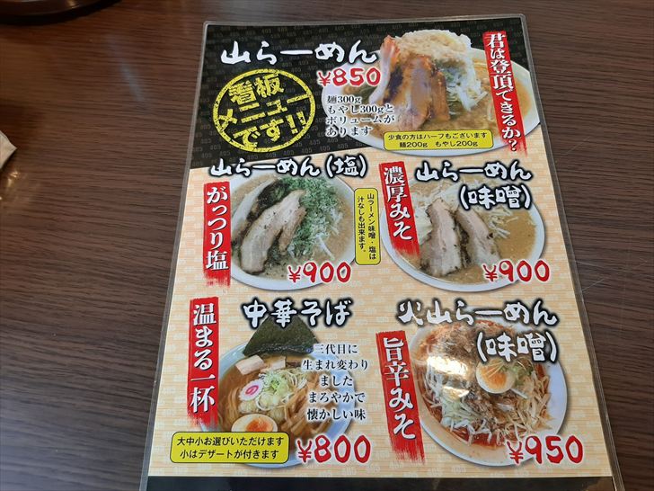 『ラーメン405』の看板メニューは山らーめんのようです。なんと麺は300g、もやしも300gとボリューム満点のいわゆるG系らーめんですね。お客さんも山らーめんを食べている人が多かったです。