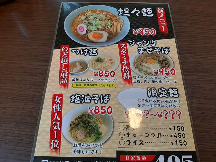 『ラーメン405』のメニュー