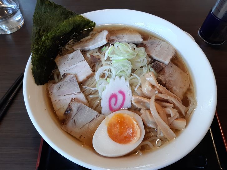 同級生のおすすめは中華そばとのことでした。それで「三代目中華そば肉増」(大)【税込1,100円】を注文しました。麺量は(小)(中)(大)と3種類ありますが、どれでも値段は同じだったので、(大)を注文しました。10分程で着丼。具材は、チャーシュー、メンマ、煮玉子(半分)、ねぎ、ナルト、のりですね。