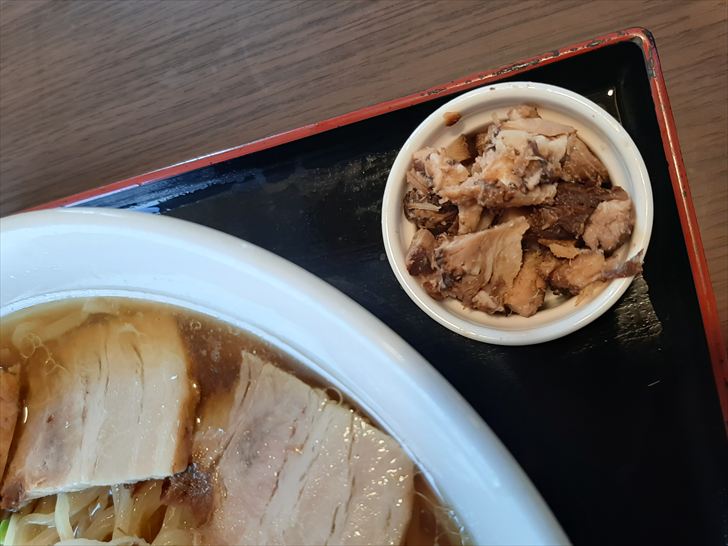そして驚いたのは、なんと肉増は、らーめんにチャーシューが載っているだけでなく、チャーシューの切れ端が別皿で提供されました。この切れ端もボリュームがあり、激旨でした。