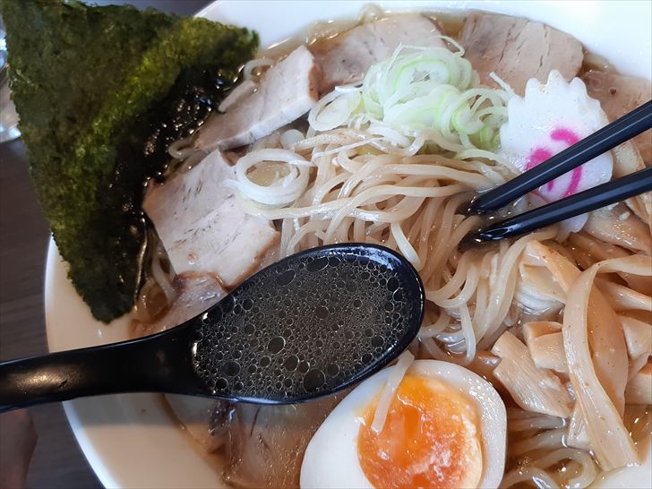 スープは鶏出汁が効いていて、甘さも感じられてバランスが良いですね。私の好きなタイプのスープで美味しいです。