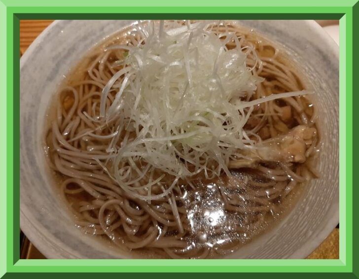 『山形蕎麦 鶴(KAKU)』の肉そばは、まず、メインとなる親鶏肉は、特別な方法でじっくりと煮込み、その旨味を引き出しています。親鳥肉は厳選した物を使用。さらに、この肉そばに欠かせないのが、特製のそばつゆですが、親鶏の出汁とともに、厳選された鰹や昆布から抽出された深い旨味が調和するように仕上げられています。そばは山形県産のそば粉「でわかおり」を使用した自家製の手打ちそばで、もっちりとした食感と香ばしい香りが良く合っています。
