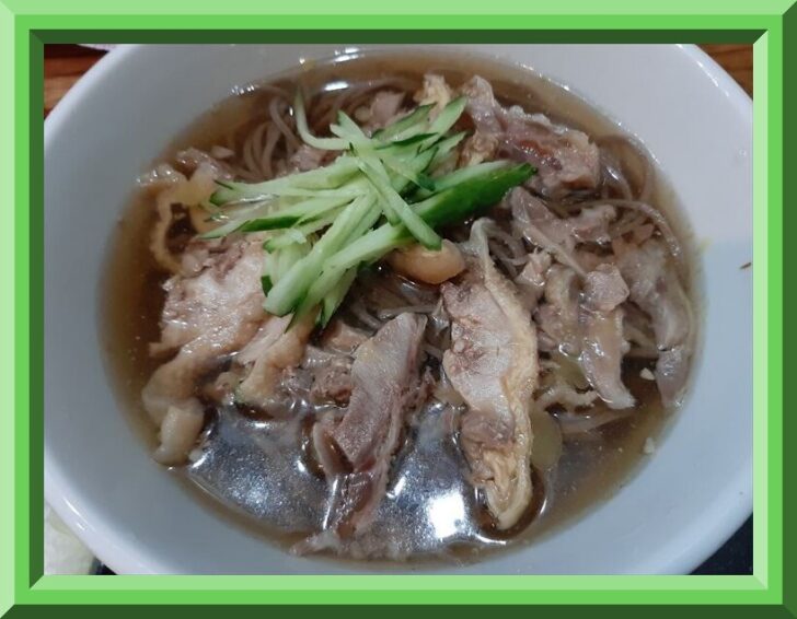 『寿屋 寿庵』さんは、明治11年(1878年)創業の老舗中の老舗で、一番町の電力ビル地下にある山形そばのお店です。一番人気の「冷肉そば」の特徴はきゅうりが載っていることですね。また、平日ランチタイムの「冷肉そば」ランチセットがとってもお得で、サラリーマンの方などで混雑しますね。また訪問した時は【税込990円】でしたが、現在は【税込1100円】になっているようです。