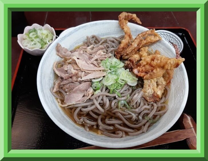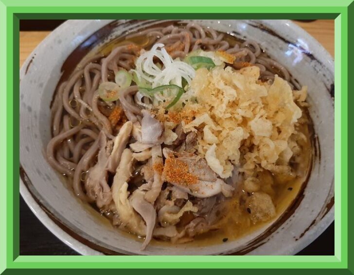 『肉そば そば処ふね』さんは、昨年2025年10月にオープンしたばかりのお店ですが、既に大人気店になっており、休日のランチタイムは行列ができるほどです。「肉そば」は、親鶏肉の旨味が溶け込んだ少し甘めのつゆが、太めの手打ち蕎麦と絡んで美味しいです。麺も(普通)盛でも360gもあるので、ボリューム満点ですね。また丁寧に調理した上質な親鶏肉をたっぷり載せてあり、食感も味付けも良くて美味しいです。