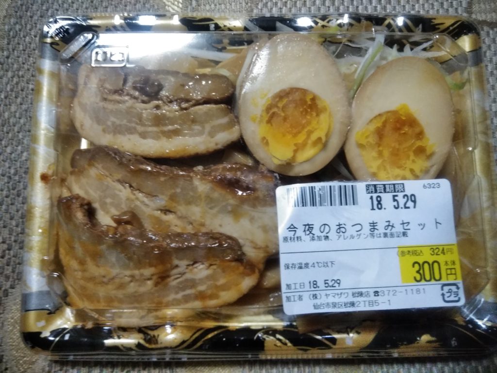 辛味噌お土産ラーメンには具材が入っていません。美味しいラーメンでも、具材がないと美味しくないですよね?そこで具材としてお奨めなのが、スーパーヤマザワの『今夜のおつまみセット』です。チャーシューと煮玉子、メンマ、白髪ネギが入っていて、おつまみとしてもいけますが、ラーメンの具材にもピッタリなんです。値段も300円(税抜)とリーズナブルです。