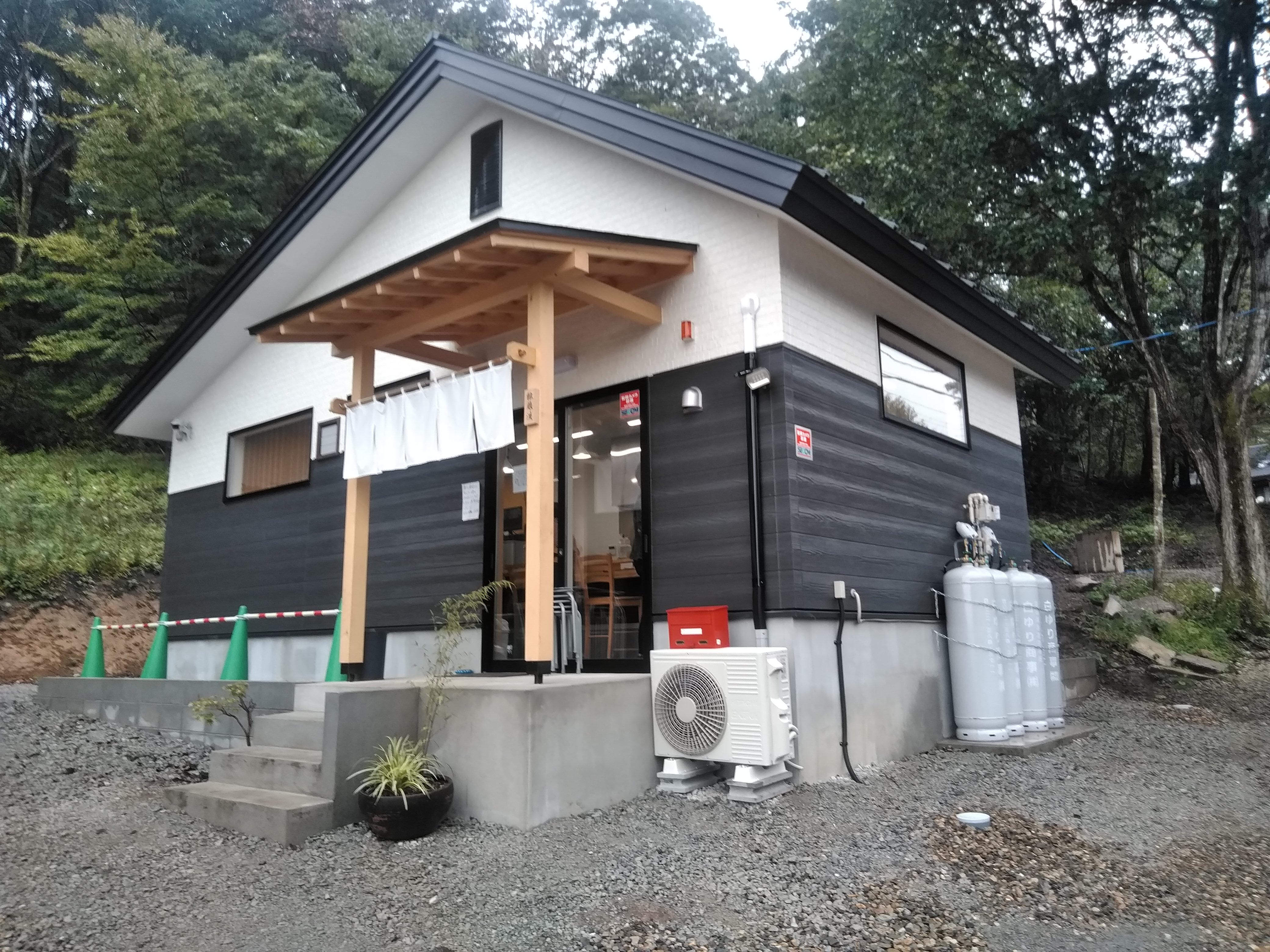岳山珈琲、ゆとり炉無我久庵を越えて、すぐに左側に新しい建物が見えてきます。しかし目立った看板などがない為、通り越してしまわないように注意が必要ですね。
